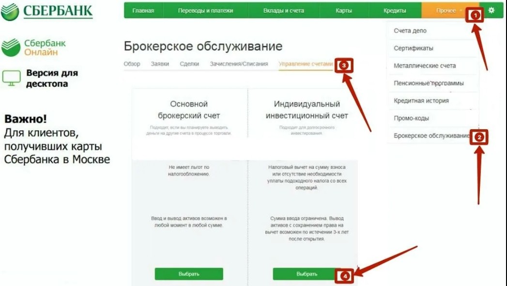 Шаги по открытию брокерского счета в Сбербанк Онлайн